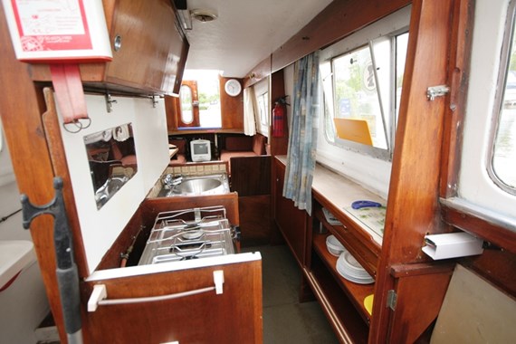 This centre cockpit cruiser with sliding top is a practcal narrow beam cruiser with a classic timber interior.